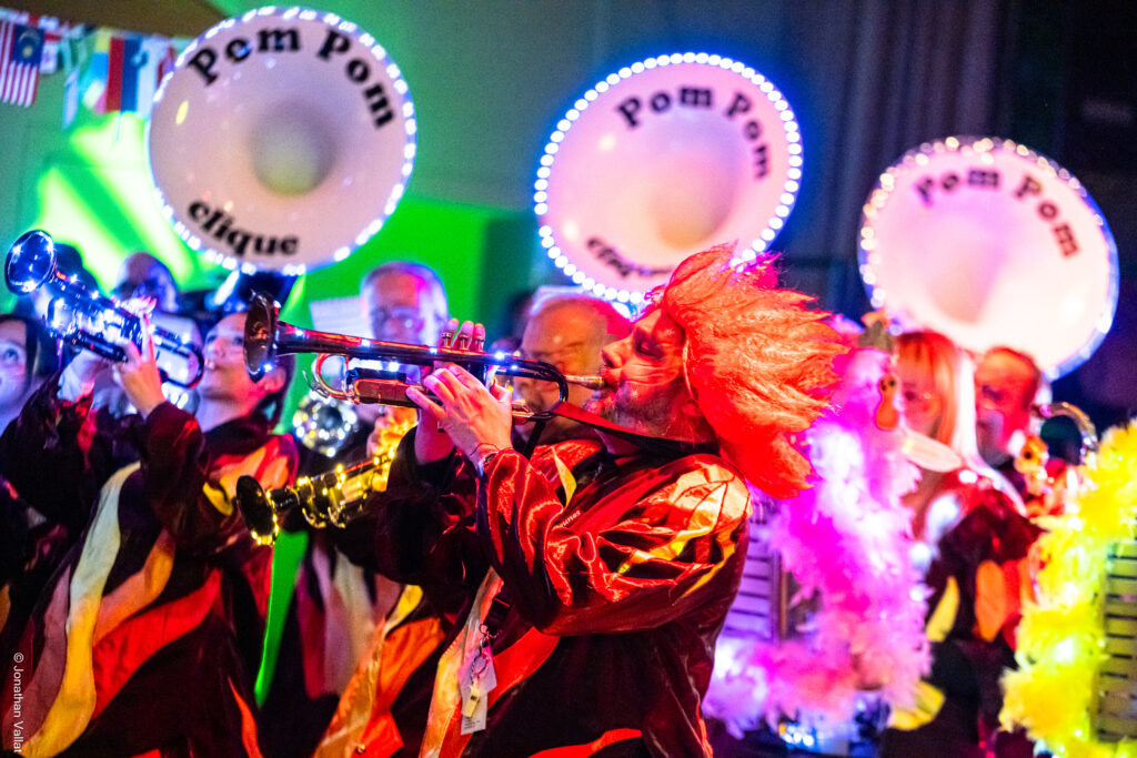 Comment ne pas être fiers de les accueillir chaque année à notre manifestation. Il y a quelques années, on était un peu jaloux d’eux parce qu’ils avaient une quotité d’impôts bien inférieure à la nôtre. Maintenant qu’on s’en rapproche tout, tout près, on ne leur en veut plus et on leur laisse une grande place dans notre carnaval. Bon, OK, ils jouent le vendredi soir et le dimanche, mais ils ont une bonne raison de ne pas être là le samedi : ben oui, il y a aussi un carnaval dans leur village. Alors c’est tout à fait normal qu’ils y restent… et on n’est plus jaloux ! Bien du plaisir parmi nous pour cette 62 édition !
